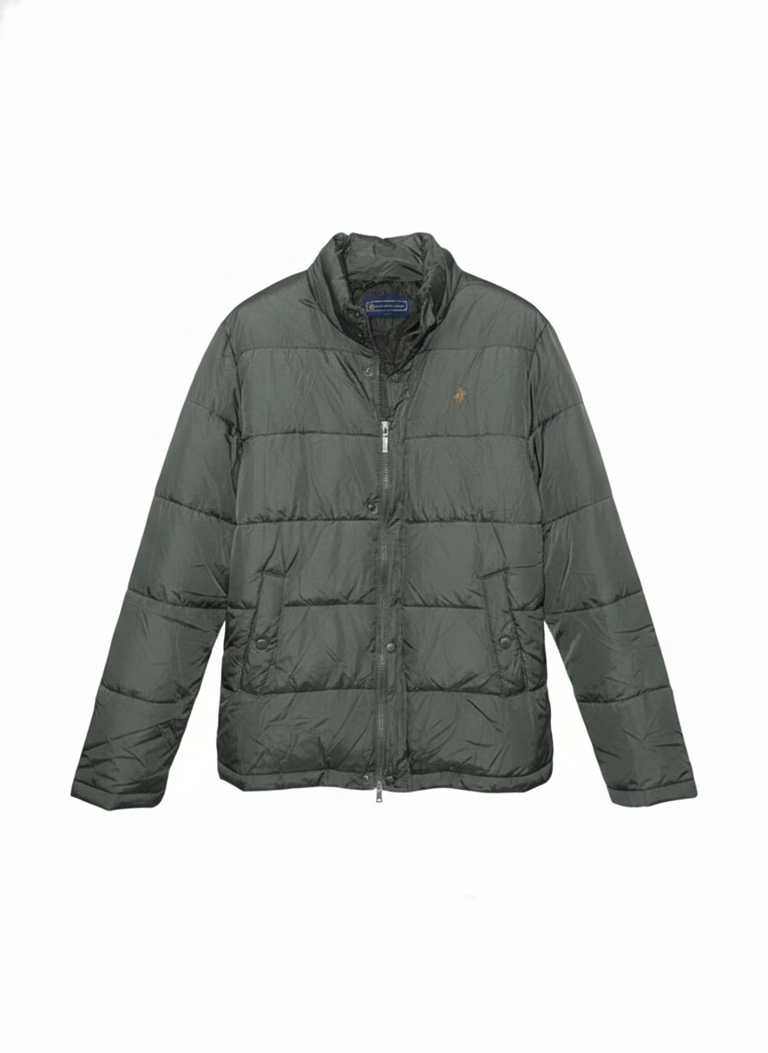 Green puffer jacket for men with a warm, lightweight build. Comfortable for winter wear, travel, and everyday use.