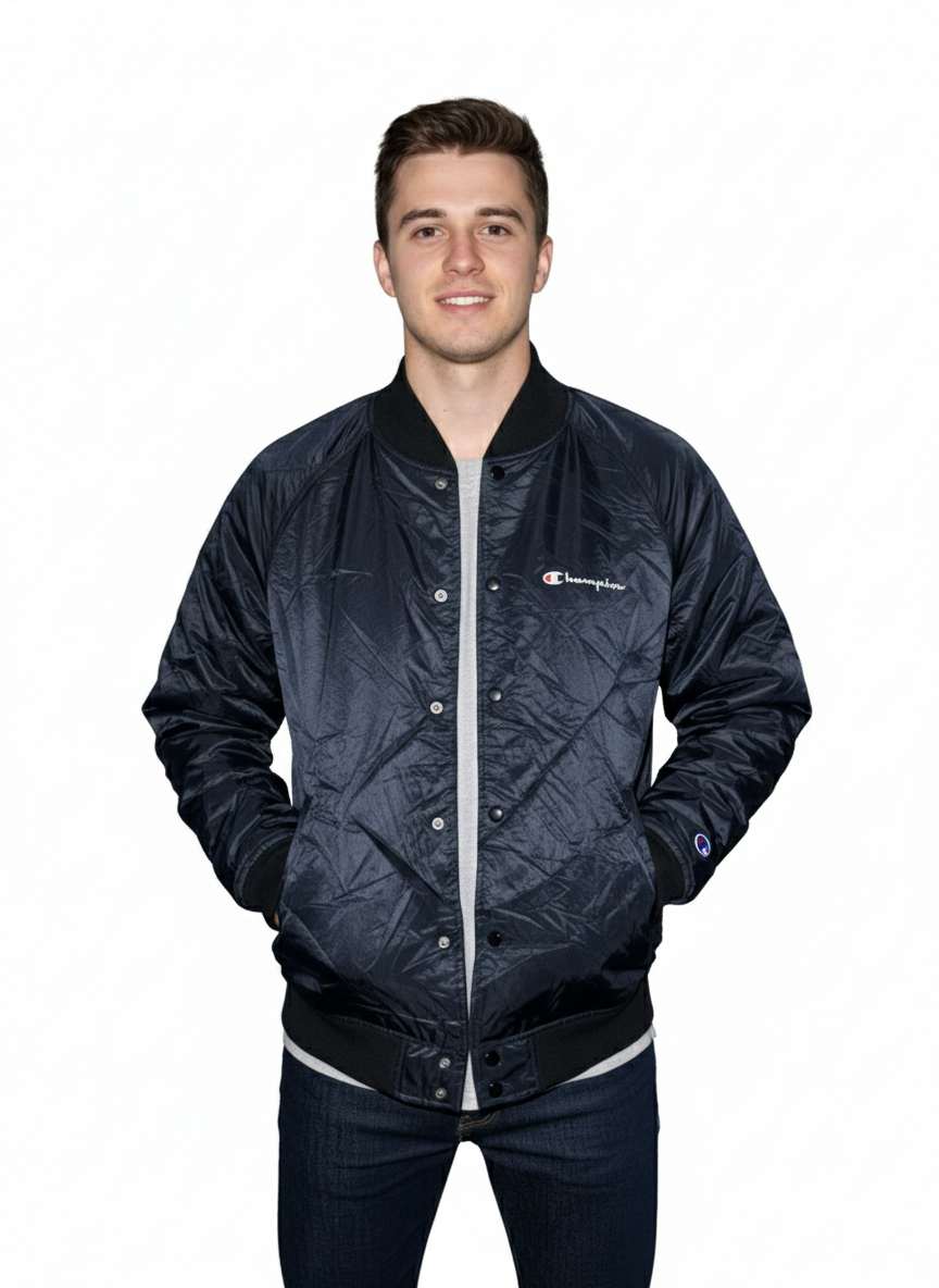 Designed with a classic varsity silhouette, this jacket features a snap-button front closure, ribbed cuffs, and hem for a snug fit. The lightweight padded construction keeps you warm without adding bulk, making it ideal for mild winters and cool evenings.