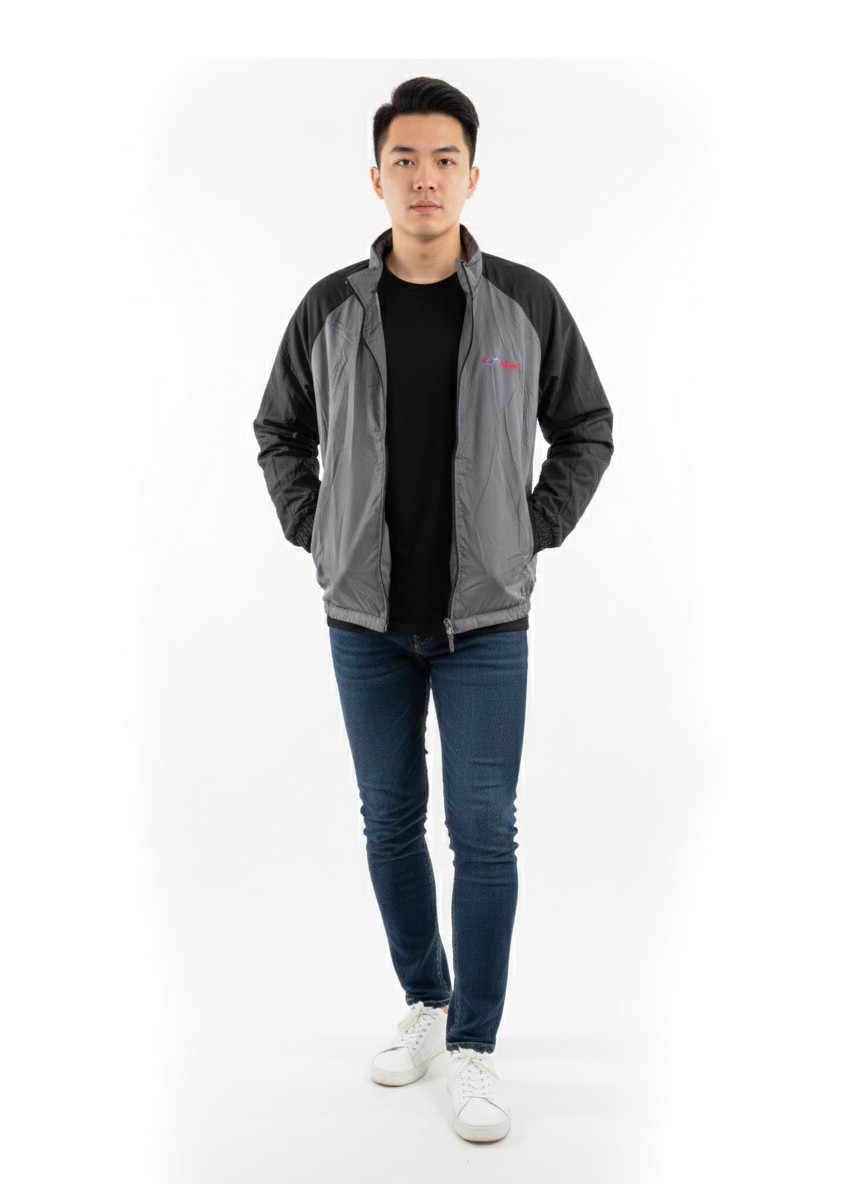 Return To ShopLightweight dual-tone track jacket in grey & black. Comfortable fit, breathable fabric, and perfect for daily wear, travel, gym, and casual outings.